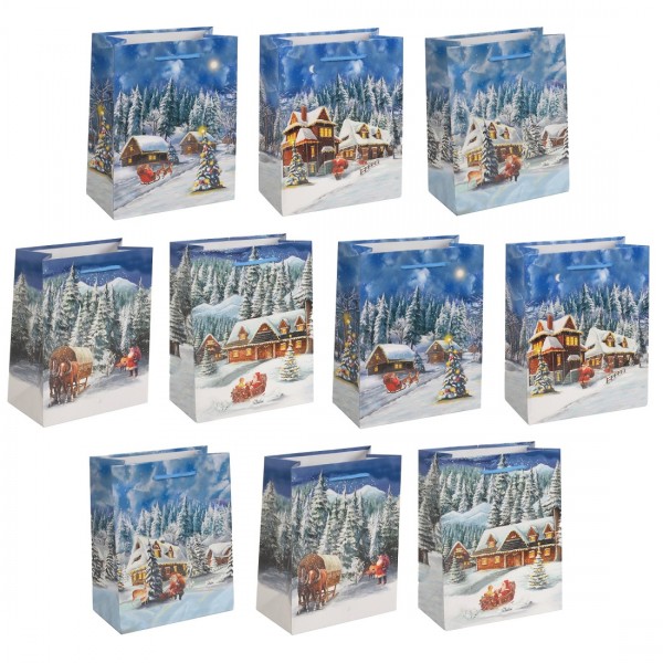 10 Stück Geschenktüten Weihnachten Schneelandschaft Tüte -Medium 23 x 18 x 10 cm